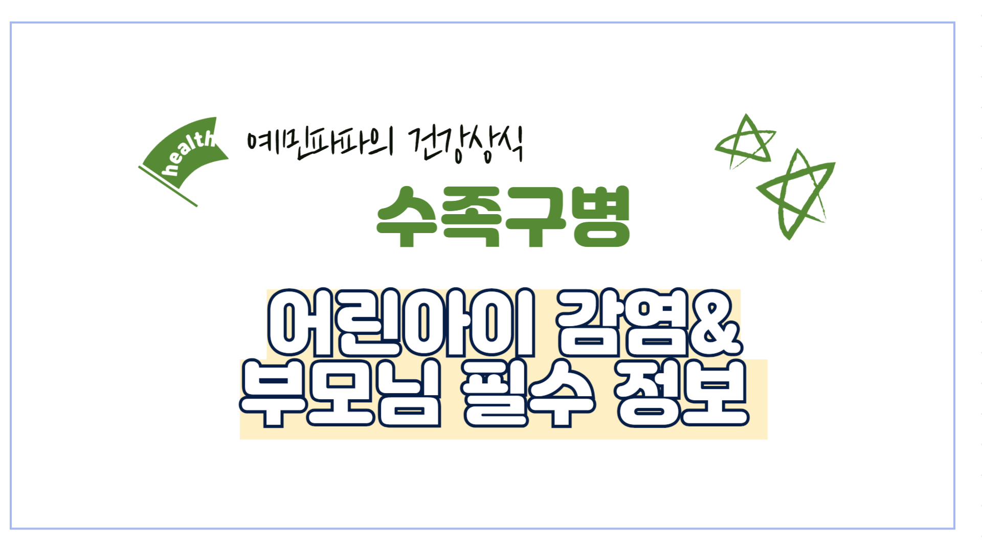 - 증상 관찰: 수족구병 의심 증상이 나타나면 즉시 의료기관을 방문하여 적절한 진단과 치료를 받습니다.