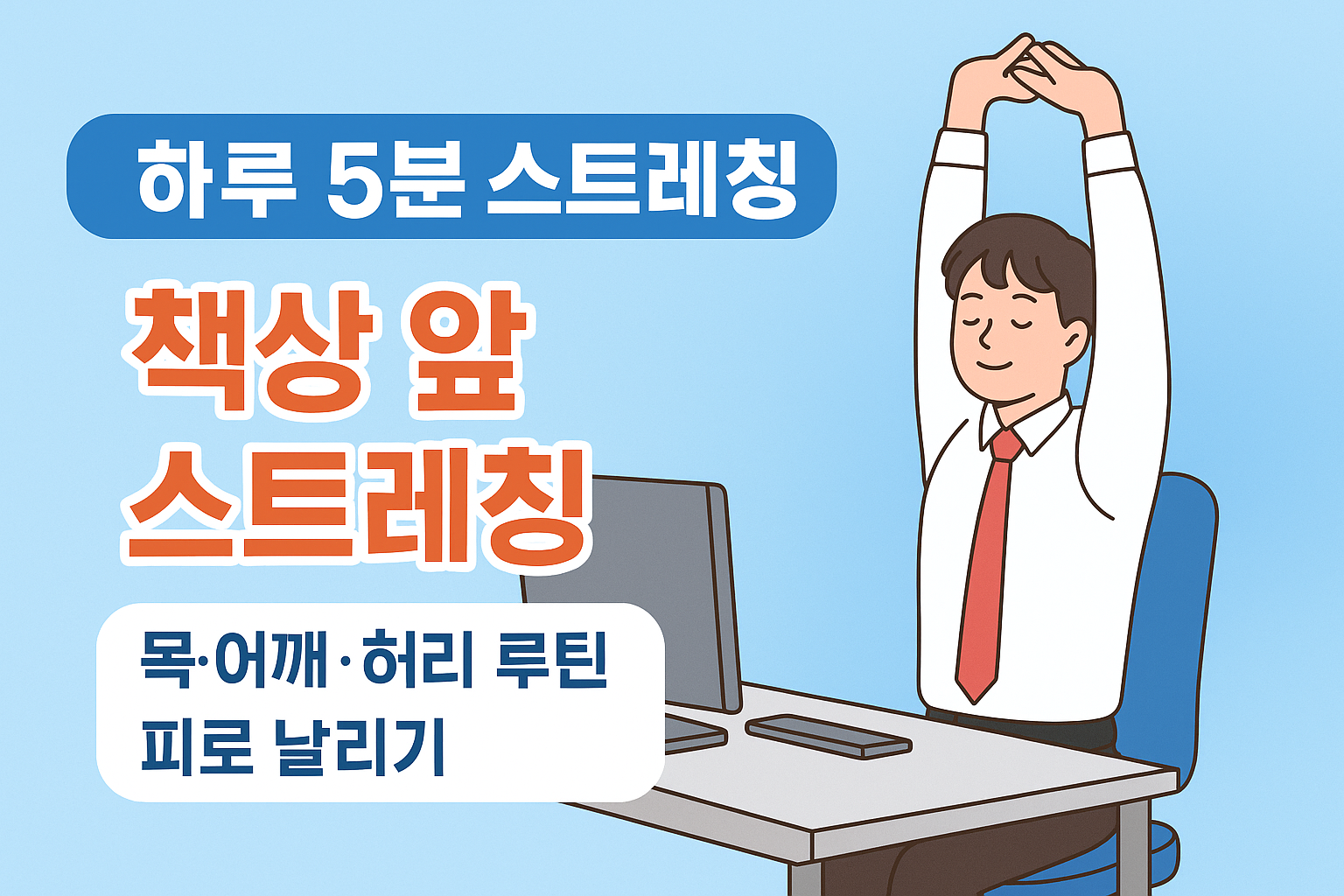 이 루틴을 꾸준히 실천하면, 직장 생활 속에서도 목·어깨·허리·손목·다리 피로를 줄이며 건강을 챙길 수 있습니다.