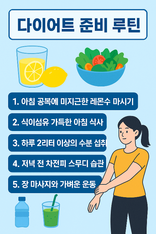 다이어트를 시작할 때 많은 분들이 가장 먼저 찾는 것이 바로 장 정화 방법입니다. 특히 비움환처럼 장을 비워주는 제품이 주목받지만, 반드시 그것만이 답은 아닙니다. 오늘은 비움환을 사용하지 않고도 충분히 효과를 볼 수 있는 루틴을 소개하려 합니다. 간단하면서도 실천 가능한 5단계 방법으로 누구나 시작할 수 있는 다이어트 준비 루틴을 정리해보겠습니다.