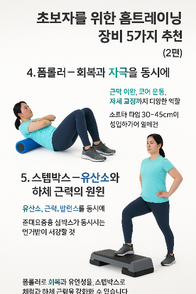 홈트레이닝의 매력은 시간과 장소의 제약 없이 내 몸에 딱 맞는 루틴을 구성할 수 있다는 점입니다. 이번 글에서 소개한 폼롤러와 스텝박스는 작지만 그 효과는 절대 작지 않죠. 폼롤러로 회복과 유연성을, 스텝박스로 체력과 하체 근력을 강화할 수 있습니다. 이제 홈트가 단순한 선택이 아닌, 지속 가능한 건강 습관으로 자리 잡을 수 있도록 나에게 맞는 장비와 루틴을 하나씩 늘려가 보세요. 당신의 건강한 주말은 이 작은 변화에서 시작됩니다.
