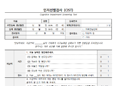 간단한 질문과 과제를 통해 인지 기능을 평가하는 검사