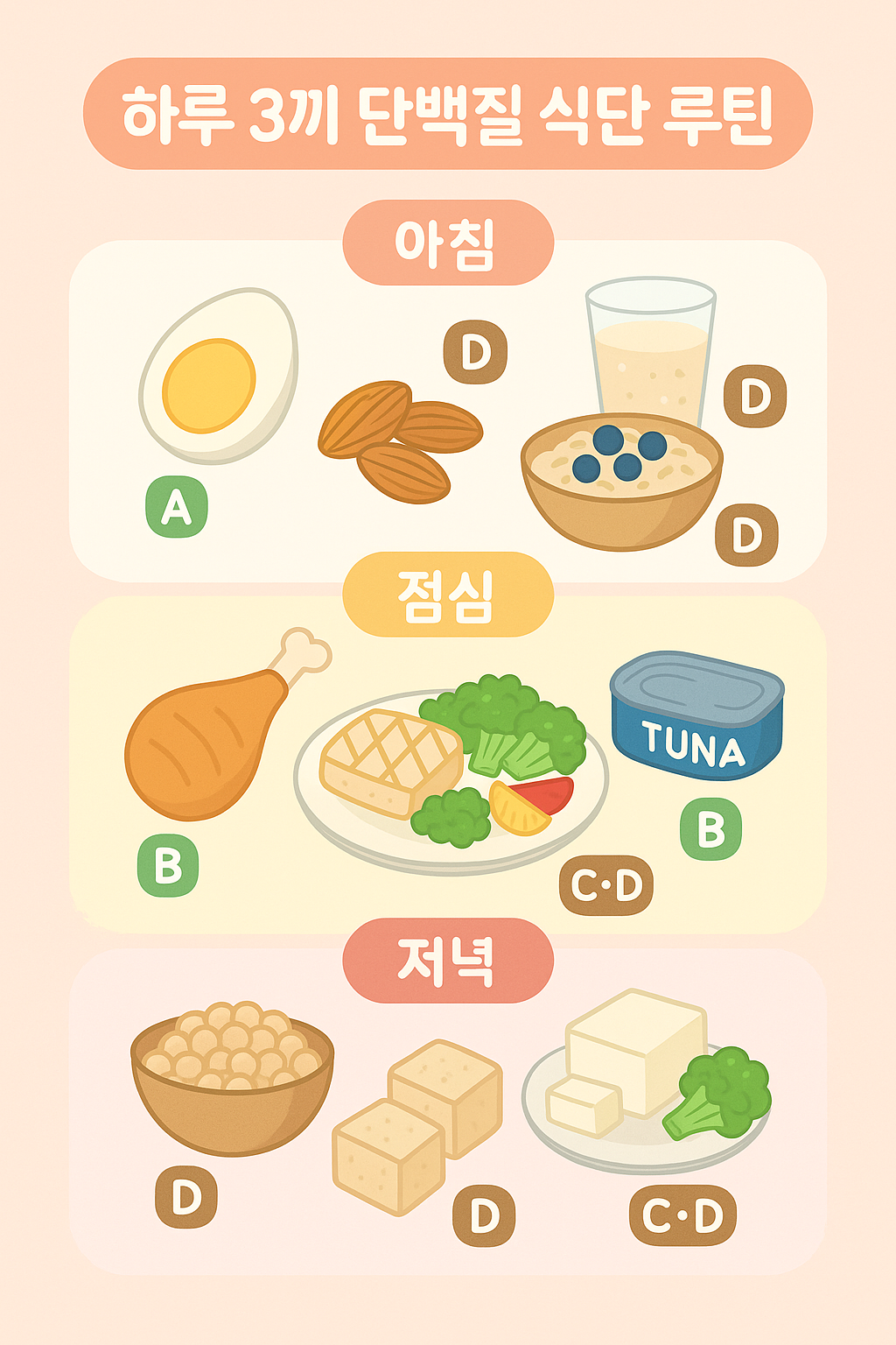 단백질 식단은 어렵지 않다. 중요한 건 한 번에 몰아 먹지 않고, 꾸준히 나눠 먹는 습관이다.
